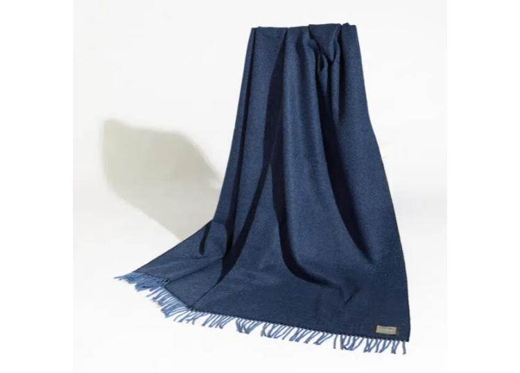 Foxford Extra Fine Merino Wool Scarf Navy/Green Tartan
