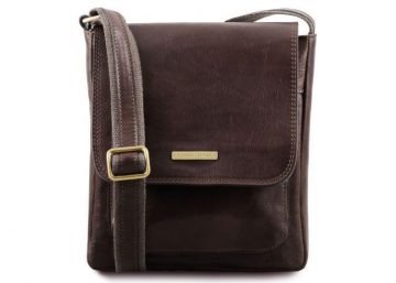 Tuscany Leather Jimmy - Leather crossbody bag for men with front pocket - Dark Brown |