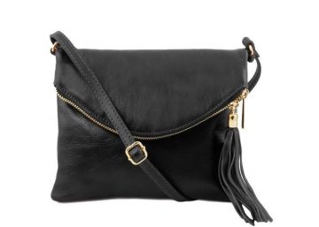 Tuscany Leather Shoulder Bag with Tassel - Black |