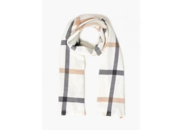 Foxford Extra Fine Merino Wool Scarf White/Grey/Camel |