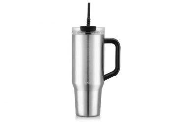 Bodum Travel Mug with Handle & Silicone Straw - Chrome |