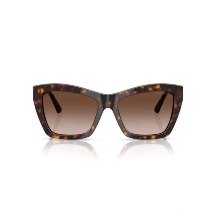 Evoke the daring spirit of Jimmy Choo in oversized acetate frames, complete with a dimensional metal plaque and laser-engraved logo on the temples. Polished metal decor in gold or silver elevates this bold cat eye with a gradient polarized lens option.