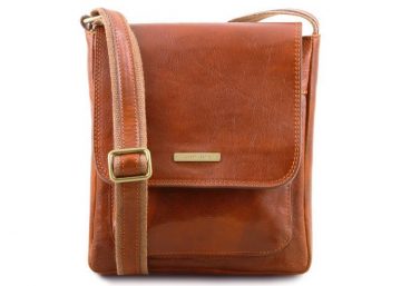 Tuscany Leather Jimmy - Leather crossbody bag for men with front pocket - Honey |
