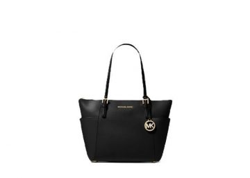 Michael Kors Jet Set Saffiano Leather Top-Zip Tote Bag - Black |